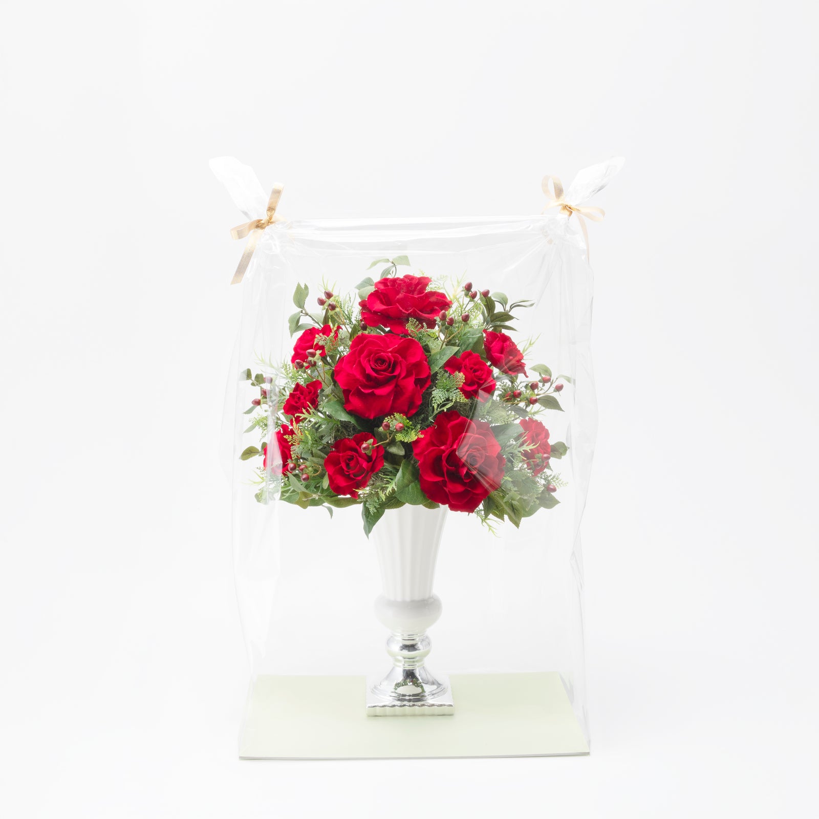 花材、花器は欠品廃盤によりやむなく変更する場合があります。アレンジメントのデザインは変わりありませんのでご了承ください。