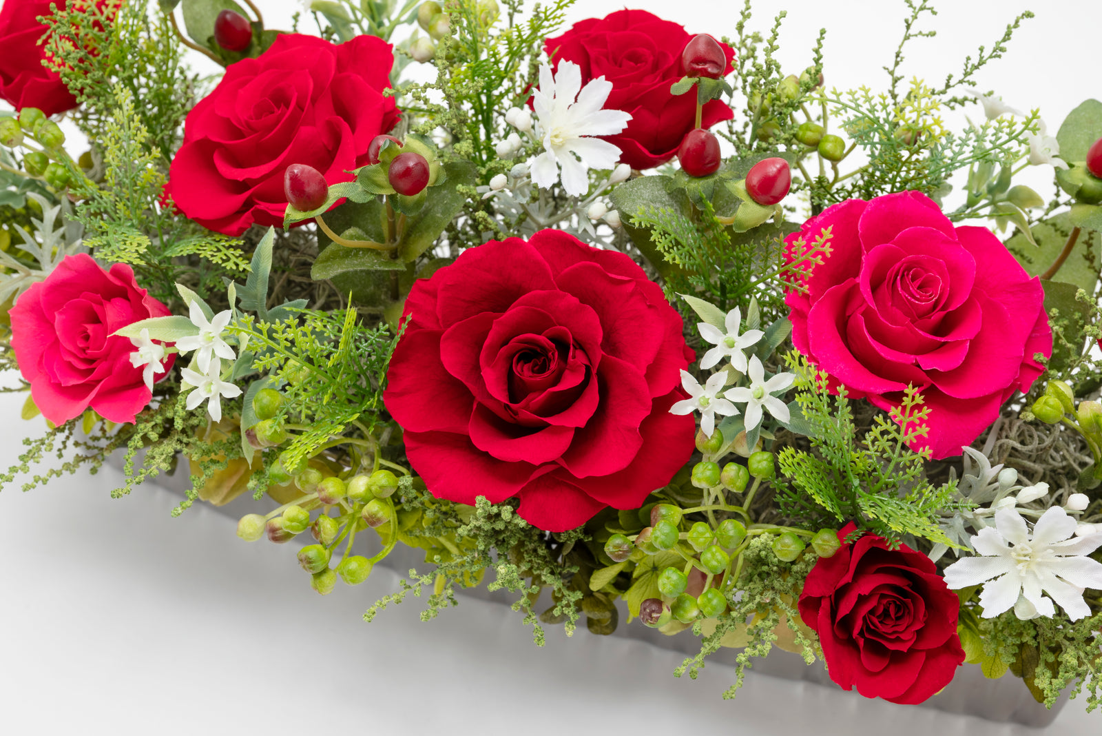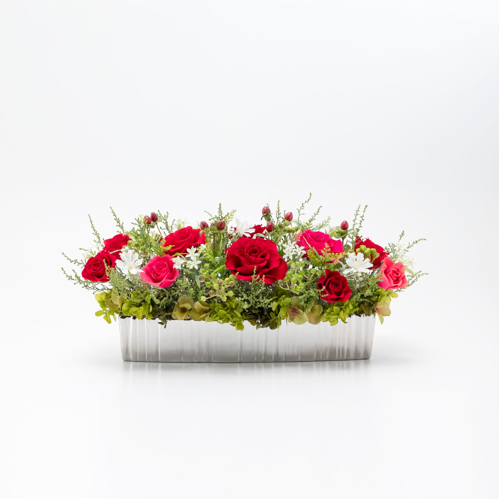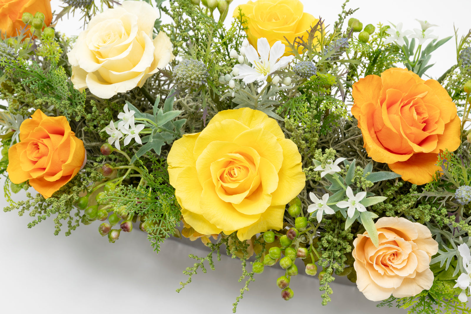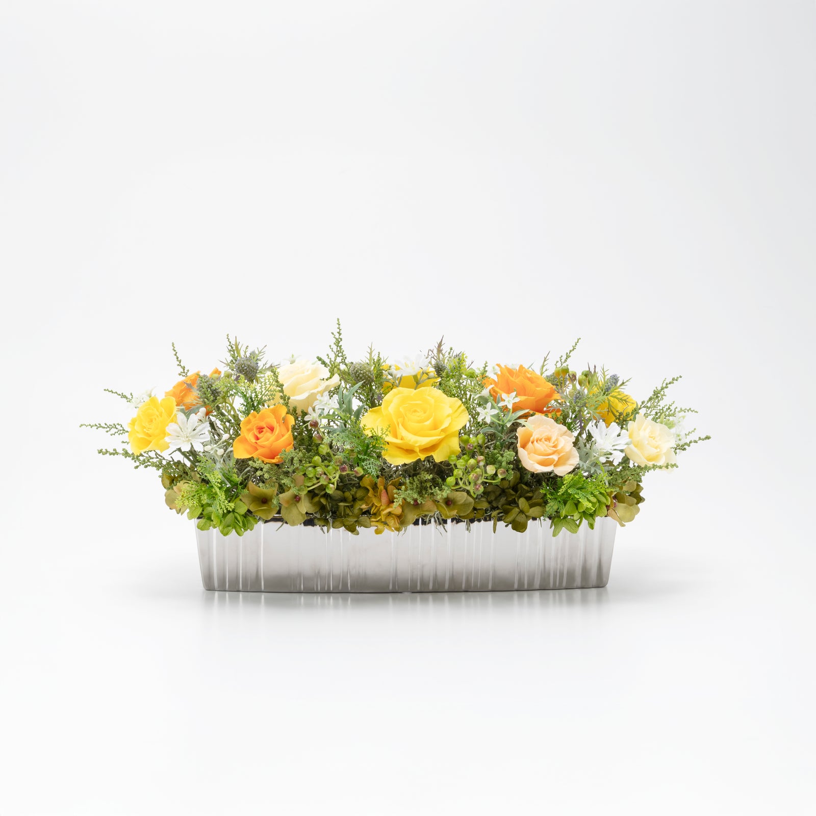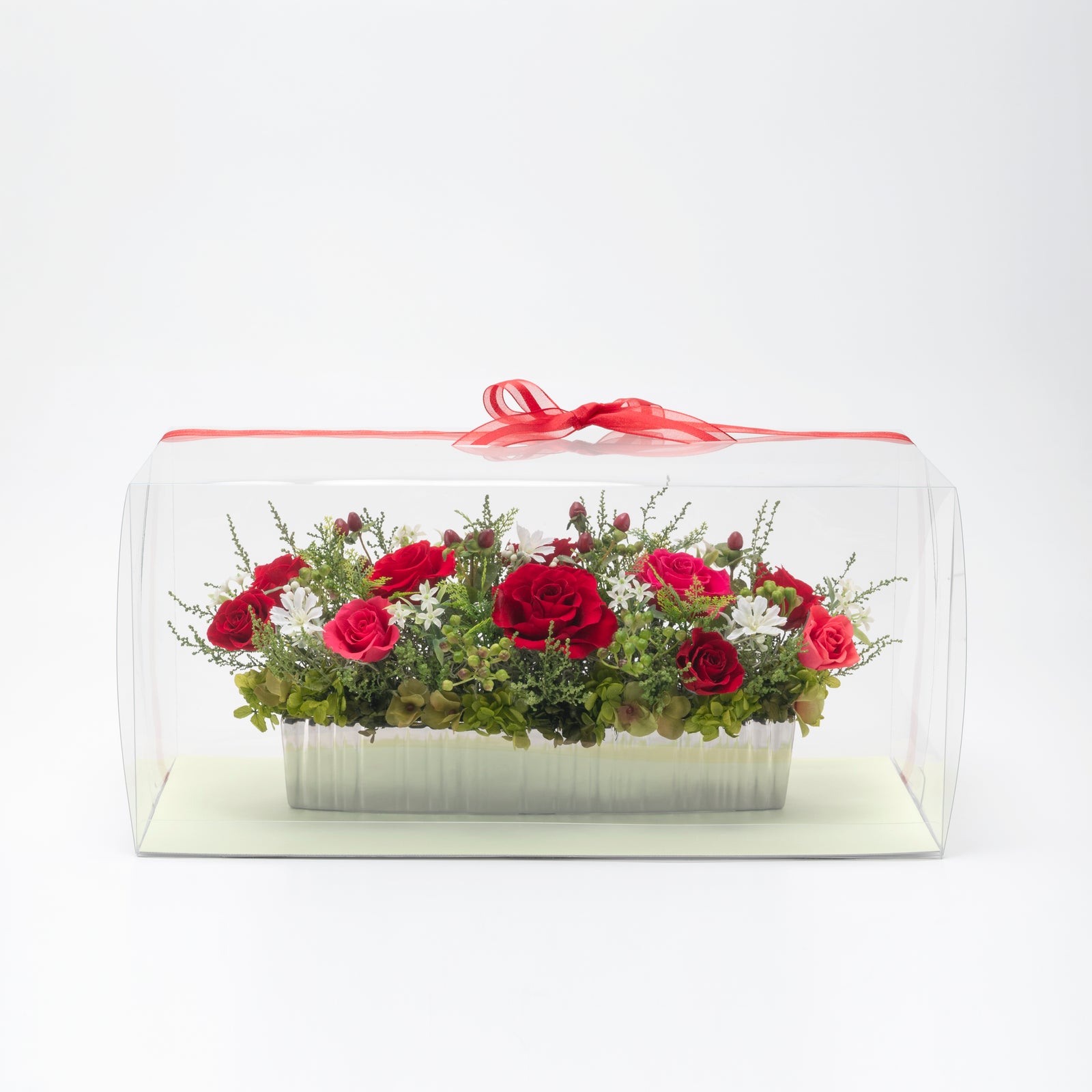 花材、花器は欠品廃盤によりやむなく変更する場合があります。アレンジメントのデザインは変わりありませんのでご了承ください。